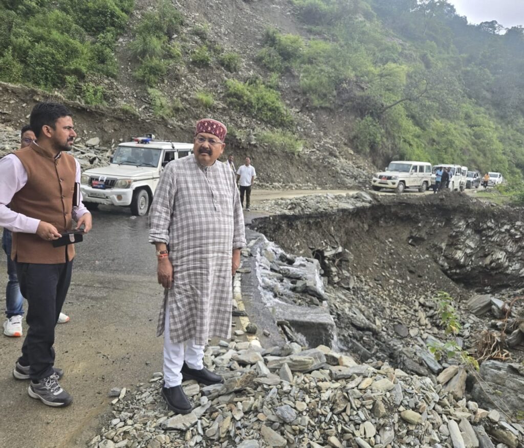 पौड़ी। प्रदेश के लोक निर्माण मंत्री एवं चौबट्टाखाल विधायक सतपाल महाराज ने भारी बारिश एवं अतिवृष्टि से प्रभावित क्षेत्रों का स्थलीय निरीक्षण कर अधिकारियों को सड़कों को तत्काल ठीक करने के साथ-साथ प्रभावित क्षेत्रों में बिजली एवं पानी की आपूर्ति सुनिश्चित करने को कहा।